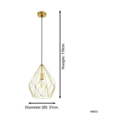 Eglo Pendelleuchte Carlton Stahl Gold | IP20 - Geeignet für 1x E27