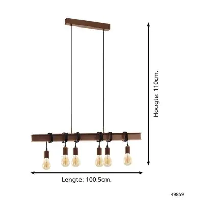 Eglo Pendelleuchte Townshend 4 Stahl Braun Schwarz | IP20 - Geeignet für 6x E27