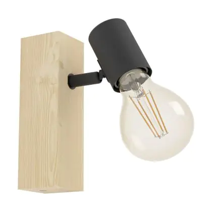 Eglo Wandleuchte Townshend 3 Holz Stahl Schwarz | IP20 - Geeignet für 1x E27