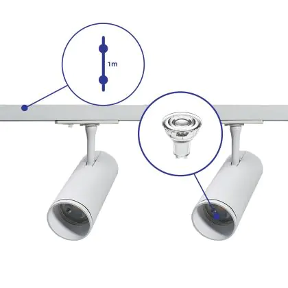 | Nom du fabricant | Complete Straight 1-meter 1-Phase Track Set White incl. 2x Spot fixture + GU10 2700K 3W Dim – 1 Mete | |
