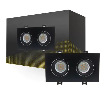 Bright Choice Spot Duo Noir | Diamètre 155x75mm - IP22 - GU10 Fitting est un spot LED encastrable. Ce luminaire est conçu pour un éclairage d’accentuation pour un usage domestique ou bien professionnel. Fixture Retrofit, ce spot LED Bright Choice en Plastic a besoin d’une place nécessaire de mm de largeur et mm de profondeur. Ce luminaire est compatible avec une ampoule GU10, il est important de faire attention si vous décidez de changer d’ampoule.