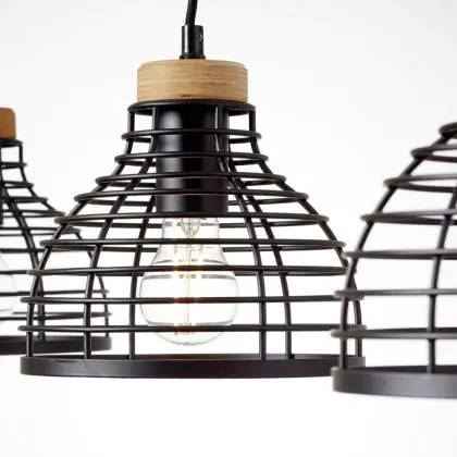 Brilliant Avia Suspension Luminaire Métal Bois Noir Bois | Convient pour 3x E27
