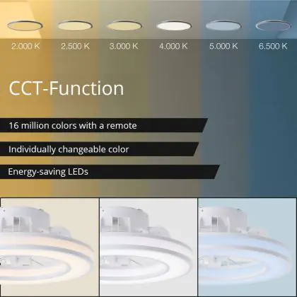 | Nom du fabricant | Ceiling Lamp White + Fan (Dm 415mm) LED 26W (3100lm, 2700K-6500K, CCT, Dimmable, ICRGB, RC, Timer, | |