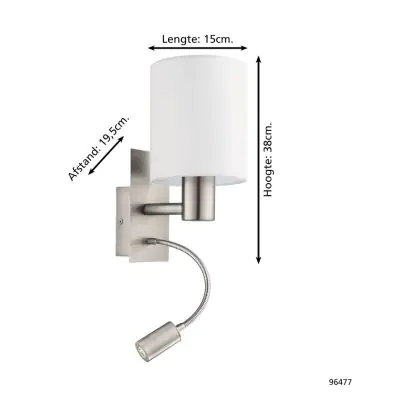 Eglo Applique Murale Pasteri Échantillon Nickel Satiné 40 | IP20 - Incl. Spot et Excl. 1x E27