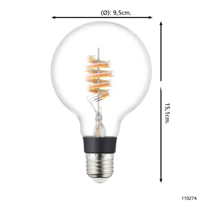 Cette ampoule Eglo Connect.Z Smart LED Globe E27 Filament Claire 4.9W 400lm - 830 Blanc Chaud + RGB | Dimmable - Remplacement 40W est l’alternative idéale pour la remplacement de votre ampoule classique de 40 W. La technologie LED intégrée vous offrira de nombreux avantages. Les ampoules à incandescence traditionnelles ont une durée de vie limitée. Cette alternative LED vous permettra de profiter d’un éclairage durable et fiable.
