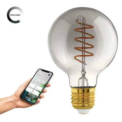 Cette ampoule Eglo Connect.Z Smart LED Globe E27 Filament Smokey 4W 150lm - 820 Blanc Très Chaud | Dimmable - Remplacement 15W avec son efficacité lumineuse de lumen par watt vous permettra de profiter d’un éclairage de qualité. Avec sa durée de vie de 15000 heures, vous n’aurez pas à vous soucier de son remplacement avant quelques années.