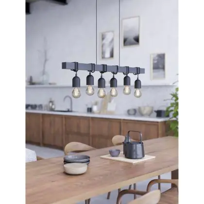 Eglo Suspension Luminaire Townshend Échantillon Noir | IP20 - Convient pour 6x E27