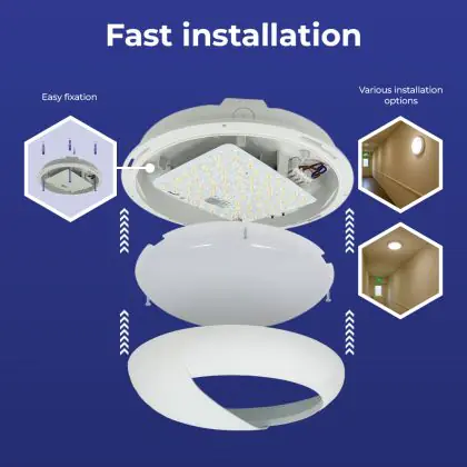 Description Hublot LED Pro V2 12/16/20W 2400lm - 830-840-865 CCT | 325mm - IP65 - Détecteur de Mouvement et de Lumière + Visière Cercle Blanc
