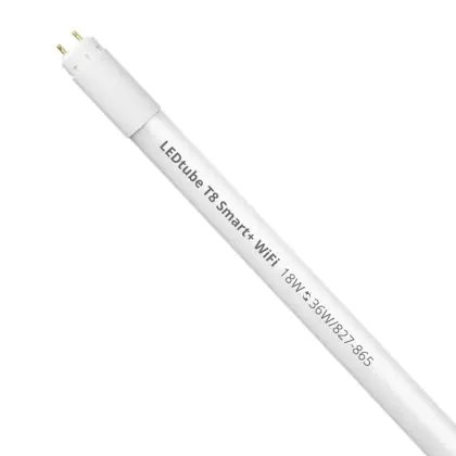 Ce tube LED Ledvance Tube LED T8 Smart+ WiFi (EM/Direct 230V) Ultra Output 18W 2300lm - 827-865 Accordable Blanc | 120cm - Remplacement 36W est l’un des produits les plus éconergétiques en remplacement des tubes T8 classiques. Avec ce tube LED vous êtes donc assuré de sa qualité. Avec une puissance de seulement 18 W, ce tube LED a la même intensité lumineuse qu’un tube classique qui consomme 36 W.