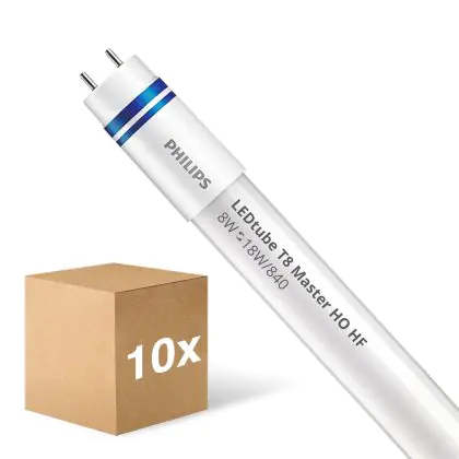 Lot 10x Philips Tube LED T8 MASTER (HF) High Output 8W 1050lm - 840 | 60cm - Remplacement 18W