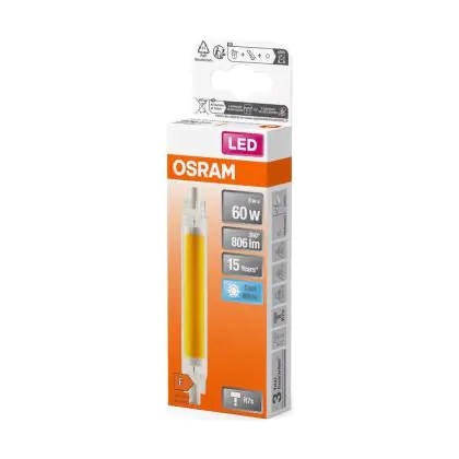 Osram LED Line R7S LED R7S 118mm Claire 8W 806lm - 840 | Remplacement 60W est une ampoule tubulaire linéaire à double extrémité. Ce type d’ampoule permet de délivrer une lumière homogène à 360° avec comme température de couleur 4000K - Blanc Froid. Cette ampoule LED R7s de chez Osram est la solution idéale pour le remplacement de vos anciennes ampoules halogènes. Cette ampoule LED n’a pas besoin de transformateur, elle fonctionne avec 230V et peut se connecter directement sur le secteur électrique.